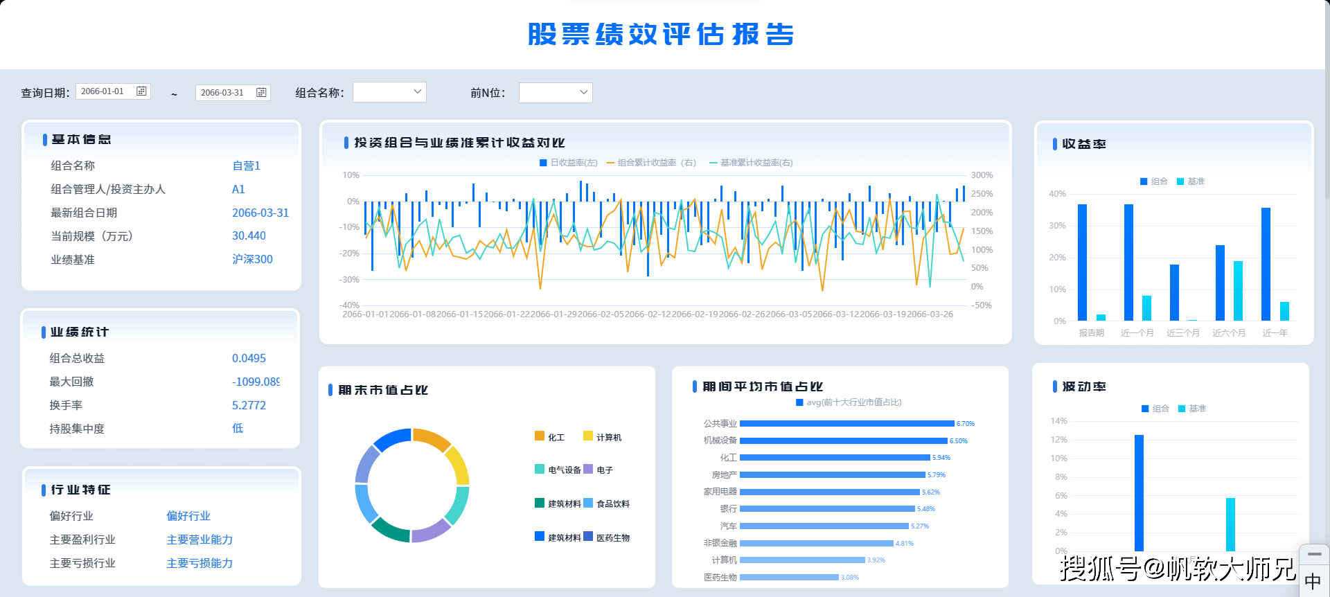 投资的结果最直观的就是看绩效,这里也可以直接搭建一个绩效评估看板。从看板中我们可以得知: