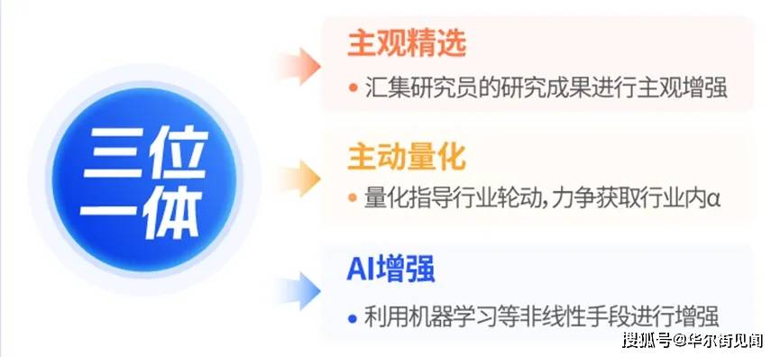 量化增强:量化研究员使用成熟的量化选股模型,持续评估各个行业的景气度和动量,动态筛选出当前阶段最具适配价值的行业,并和研究团队的推荐个股交叉验证;