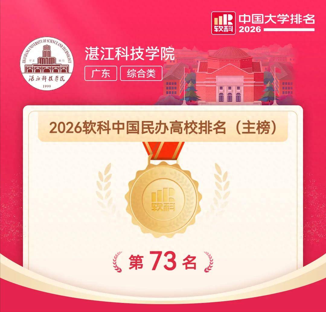 2026-04-20彩票,彩票平台,彩票网站,彩票APP下载,六合彩,快三4月15日,2026年软科中国大学排名正式发布,湛江科技学院在全国民高校中排名第73位,首次跻身全国百强民办高校行列,这一重要突破标志着学校综合办学实力迈上新台阶。
